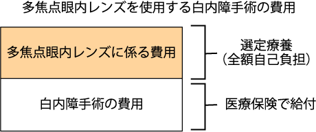 選定療養とは患者様ご自身が選択して受ける追加的な医療サービスで、その分の費用は全額自己負担となります。令和2年4月より、術後の眼鏡装用率の軽減を目的とした多焦点眼内レンズを使用する白内障手術は、厚生労働省が定める選定療養の対象となりました。